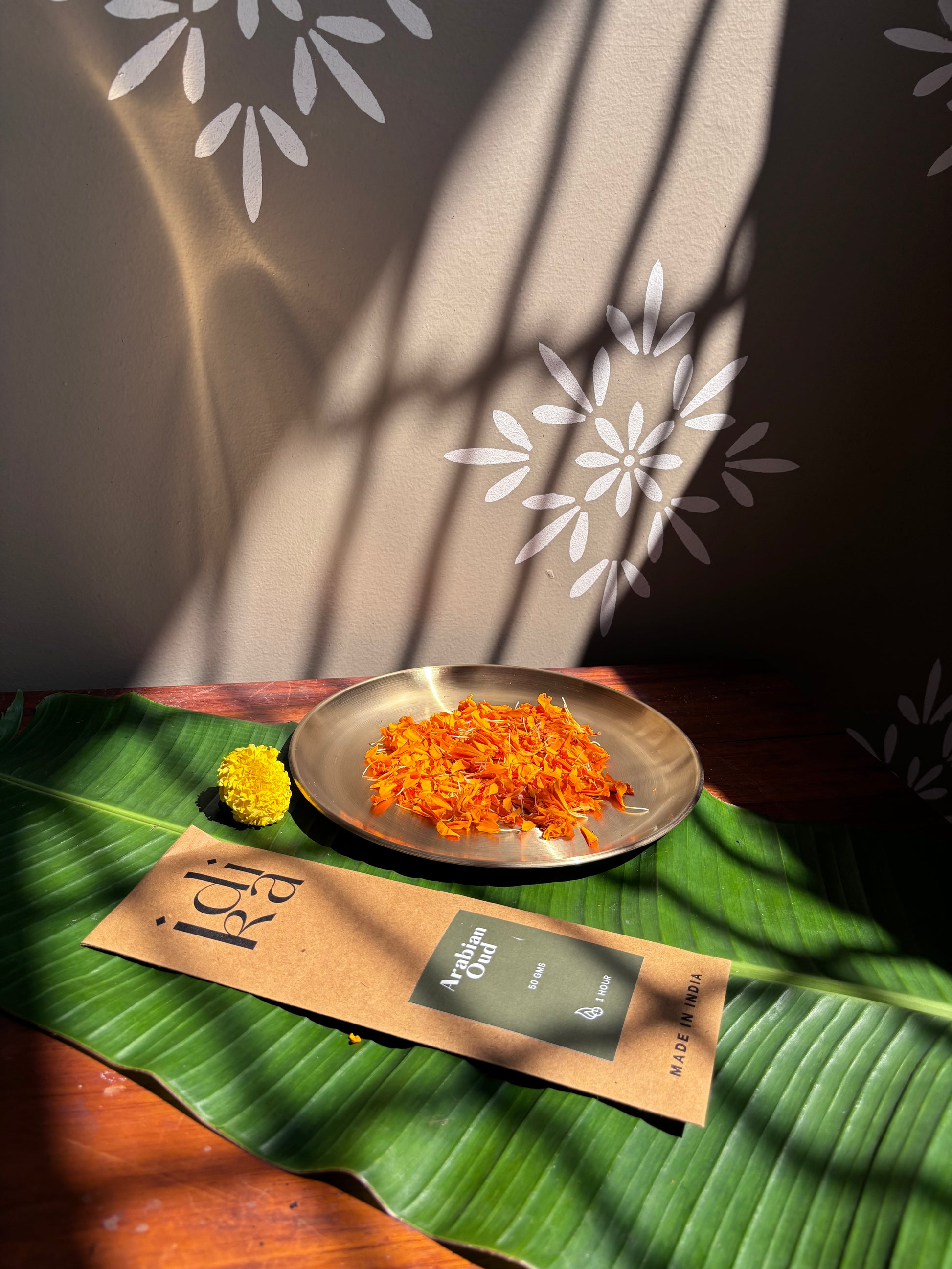 Indulge in the luxurious and exotic aroma of Arabian Oud, a fragrance known for its aphrodisiac and mood-boosting properties. This non-toxic, long-lasting natural incense stick creates a romantic and pleasing atmosphere, perfect for special occasions.